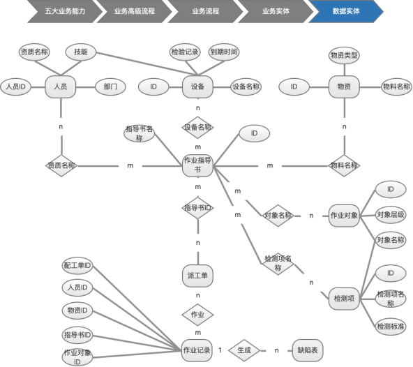 在上述业务流程涉及到的业务实体如下图::::::